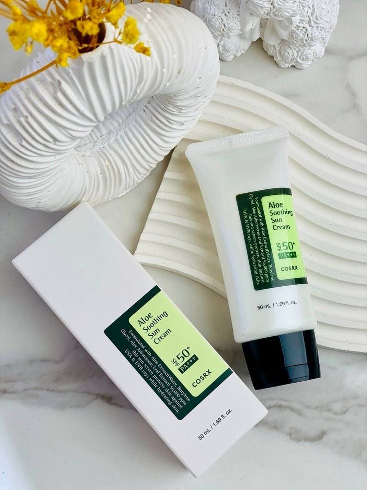 COSRX Aloe Soothing Sun Cream is a lightweight daily sunscreen enriched with 5,500ppm of aloe vera extract to hydrate and calm the skin while protecting against harmful UV rays. Its non-greasy texture absorbs quickly, leaving skin soft, soothed, and protected without a white cast.