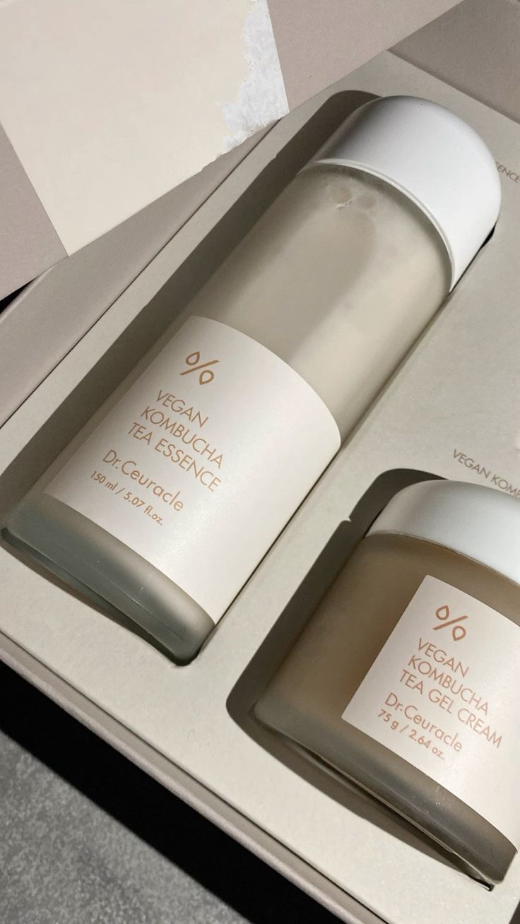 A premium skincare gift set featuring the Vegan Kombucha Tea Essence and Gel Cream — the perfect duo for detoxifying, hydrating, and rebalancing tired skin.